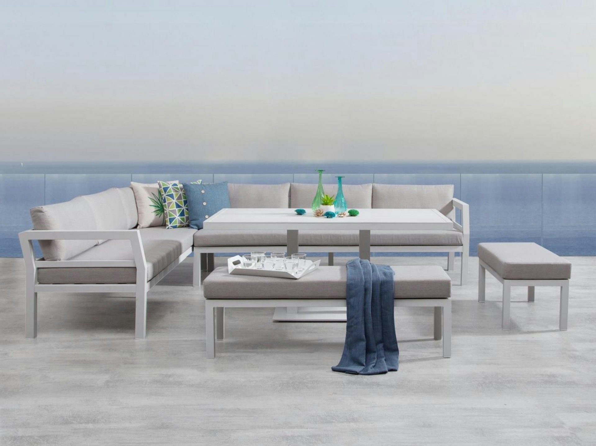 | Outdoor entertaining made easy with lounging and dining in one | |