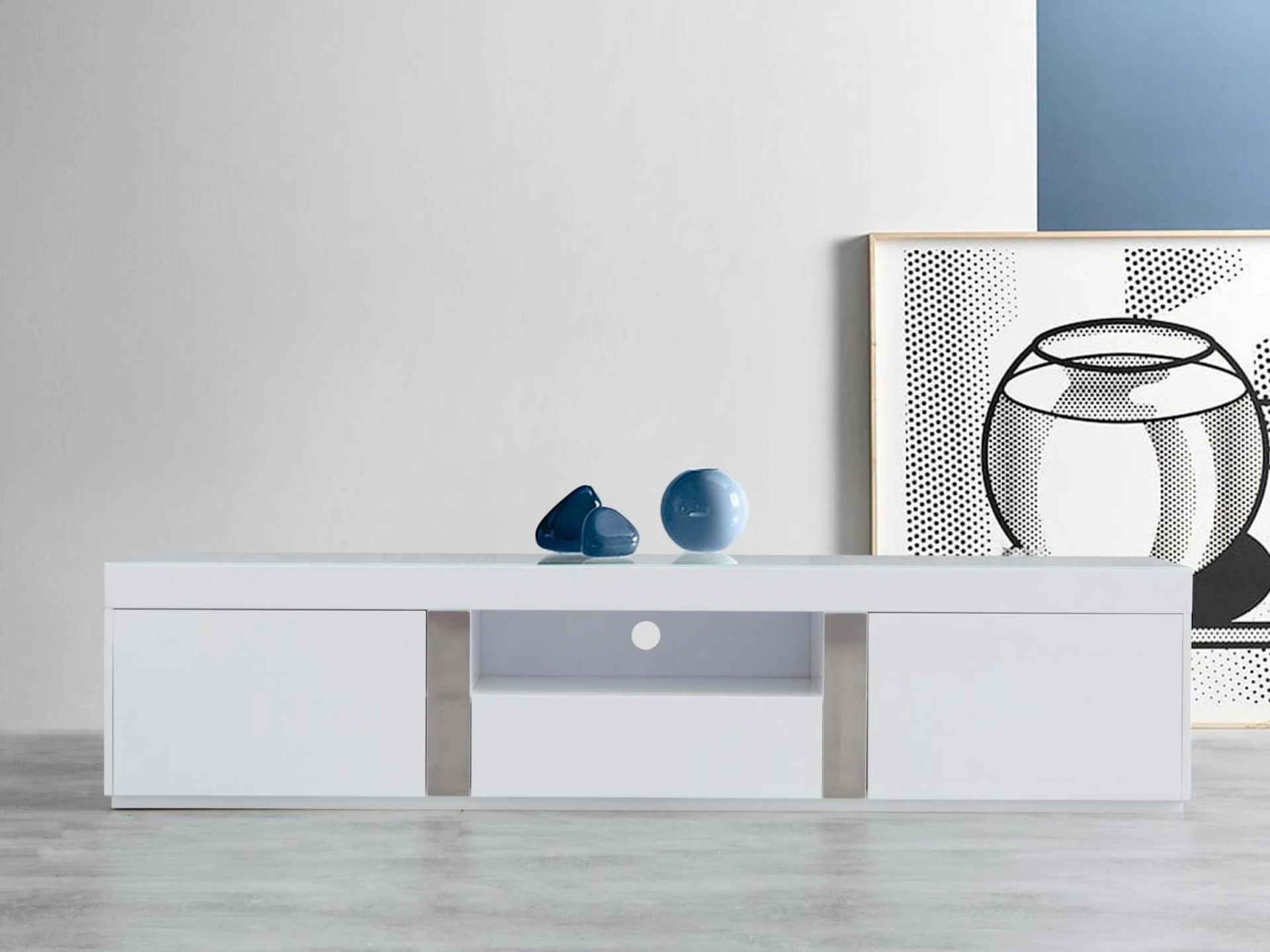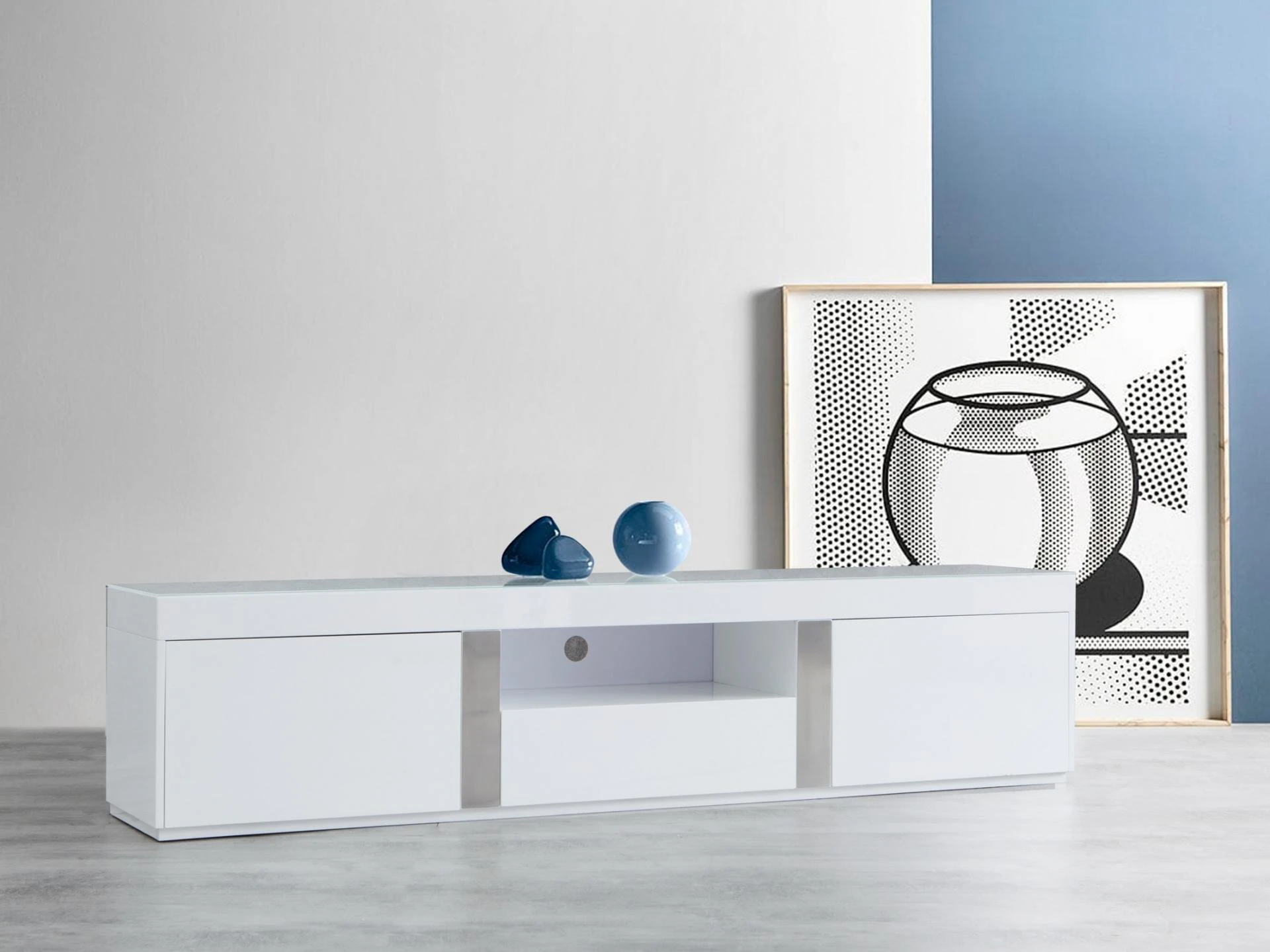 | Contemporary styling with a high gloss finish, soft-close drawers and MDF construction | |